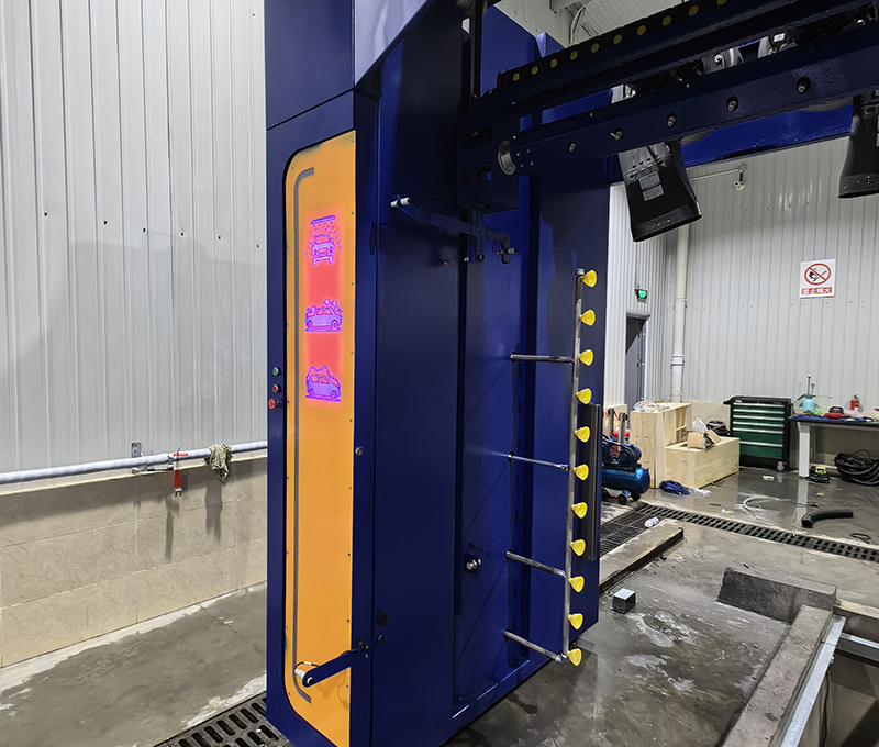 3、360度高壓水刀清洗,進口水泵配合大功率電機,直驅鏈接方式,保證沖洗壓力,勻速,勻壓,勻距清洗車身,德國倍加福超聲波檢測,內嵌式吊梁行走方式配合私服電機,行走穩定,行走速度可調節;